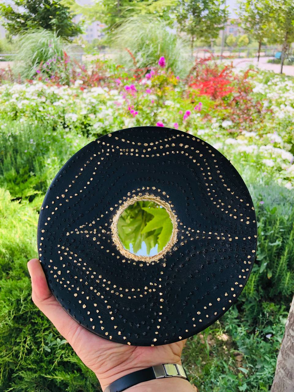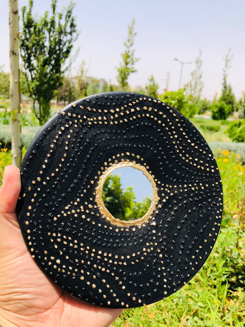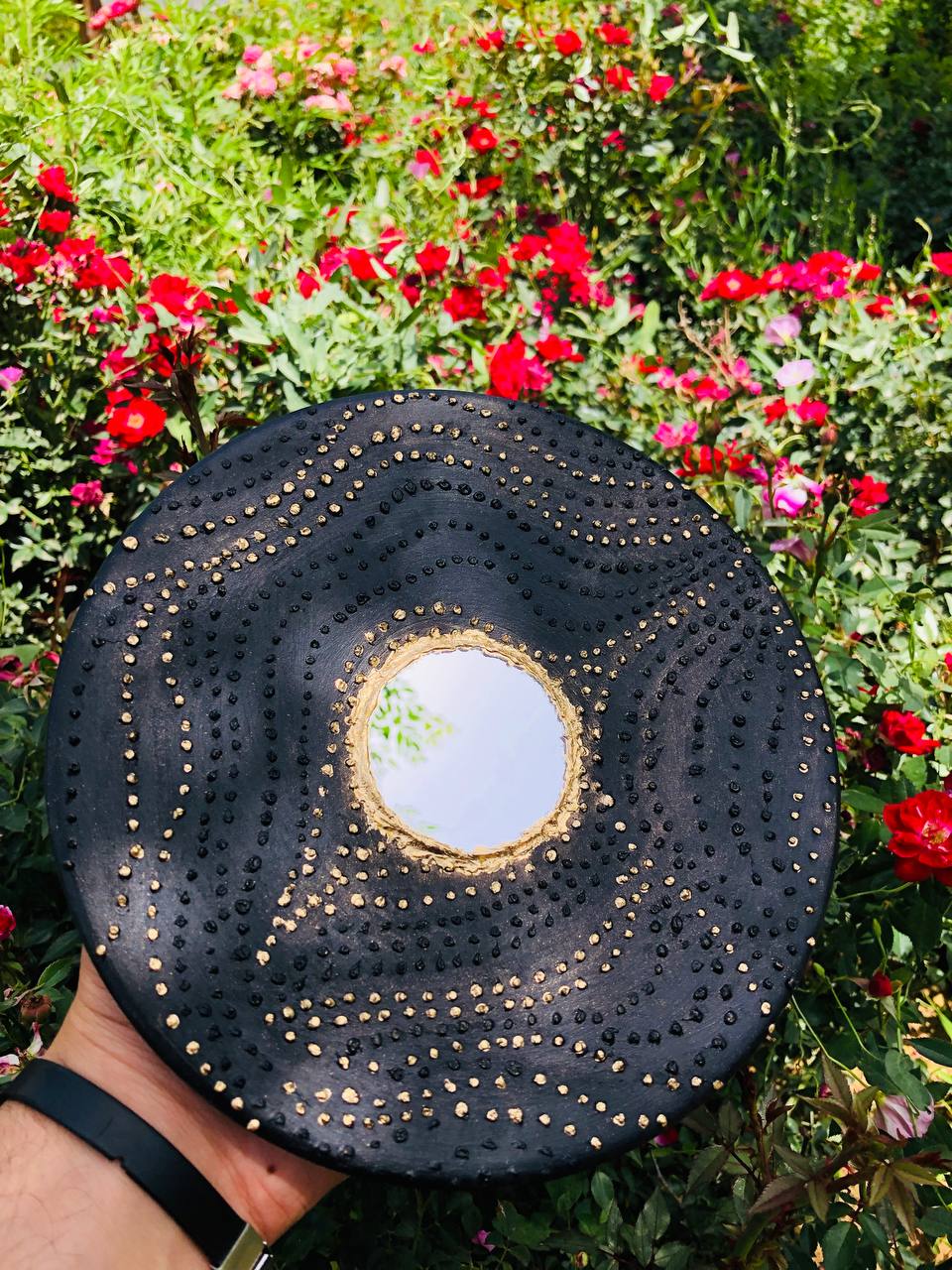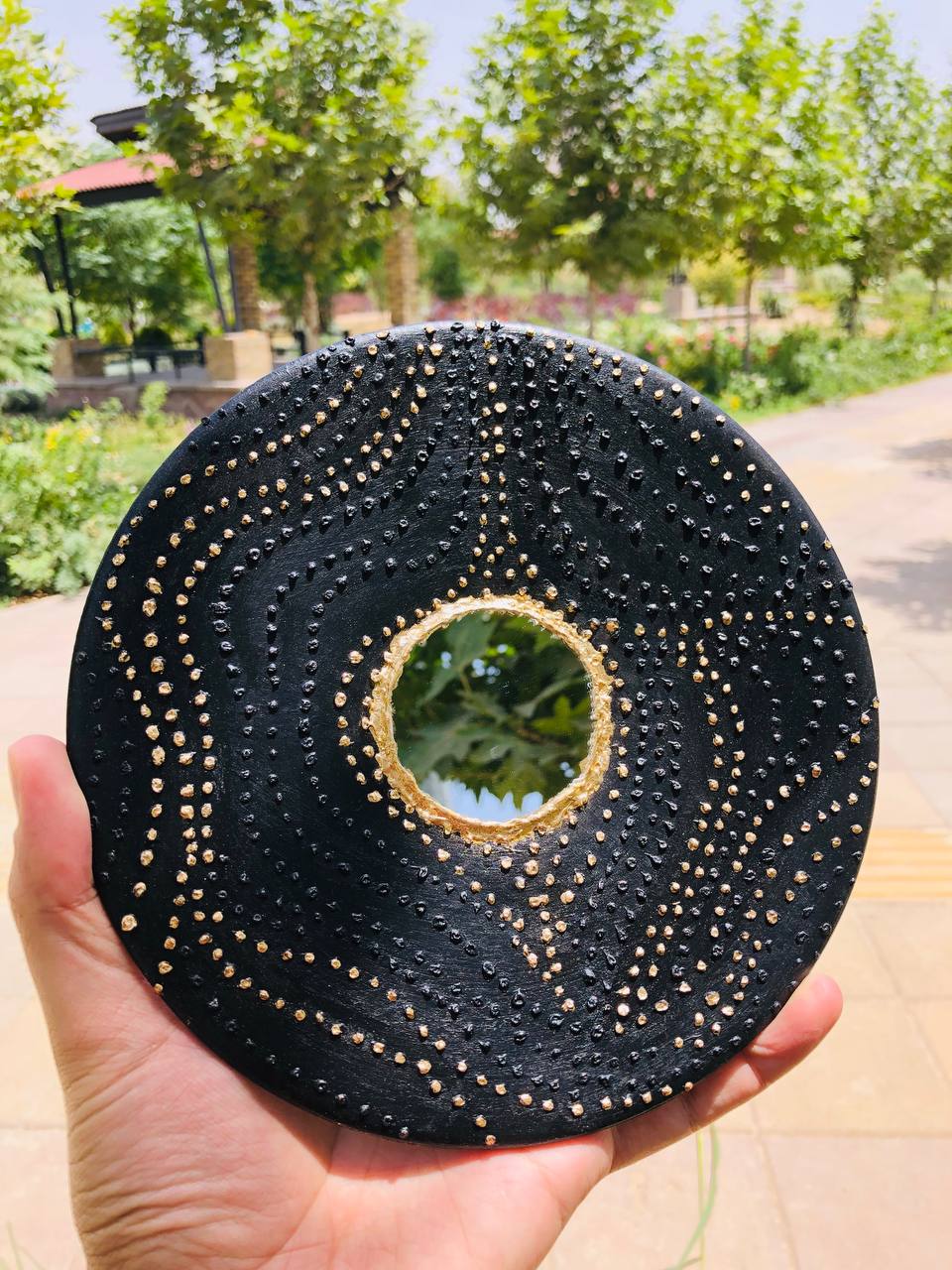 بشقاب دیوارکوب سفالی طرح آینهای – قطر بشقاب 30 سانتی متر – رنگ اکرلیک فرانسوی – سفال مرغوب لالجین همدان